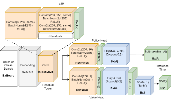 AlphaGo Zero-style chess-playing AI and state-action embedding system
